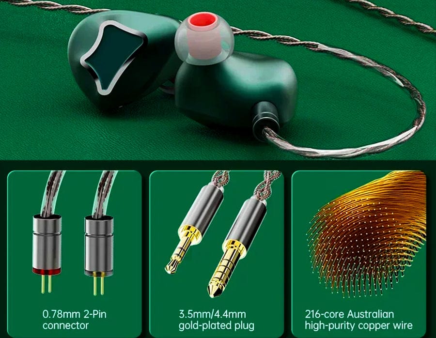 I am a sucker for metal faceplate monitors so these R1’S with the Aston Martin green metal faceplates impressed me ever since I took them out from the box. They feel good quality and heavy which says quality to me. One thing I also think would add some awesome aesthetics and maybe an audio gain is Penon Lacquer Orange tips. I think the orange and green together would look insane. Unfortunately, my Penon tips have not arrived yet at the time of writing this review. I asked on one of the many groups I am on and a good friend was so kind to send me a photo as he owns both and I include the photo with his permission in this review. Man I liked these so much that for the first time I used an upgrade cable on an in ear monitor. Nicehck send me an upgrade cable to review and I hooked it up and man the synergy is so good I wish the R1 came standard with this cable. It’s called the Four mix and it is Lime green in color and so nice and thick but not in a heavy way. It also came in 4.4mm Balanced so I knew I could the R1 enough juice.