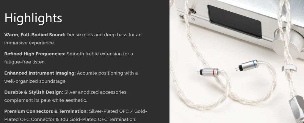 NMD Markets the Mist as warm sounding premium cable that enhances the mids and vocals but not so much as to still have sparkly highs. For my first listening impressions I used my BQEYZ Wind in- ears with Penon Liqueur Orange tips connected to my Astel & Kern AK240 mkii and went straight to my Tidal- Favorite Albums and started with Leonard Cohen- Songs from the road album. First song Lover, Lover Lover and I don’t know if I am just drawn to strings and if the Mist just enhanced the string instruments but the first thing, I noticed was the warm and thick sounding bass guitar. I also believe the Penon Orange tips did also play a part and the bone conduction driver in the BQEYZ Wind. Also, another weird thing I noticed also before the vocals I was trying to focus on as Leonard’s voice is after all the main attractions is a very big PRAT factor kicked in and I noticed myself foot tapping within 20 seconds. Just for research purposes I switched back to the original BQEYZ Wind cable and the Mist is warmer sounding and when I praised the Wind’s vocals in my review on them, I know standing ovation the vocals with the Mist cable connected