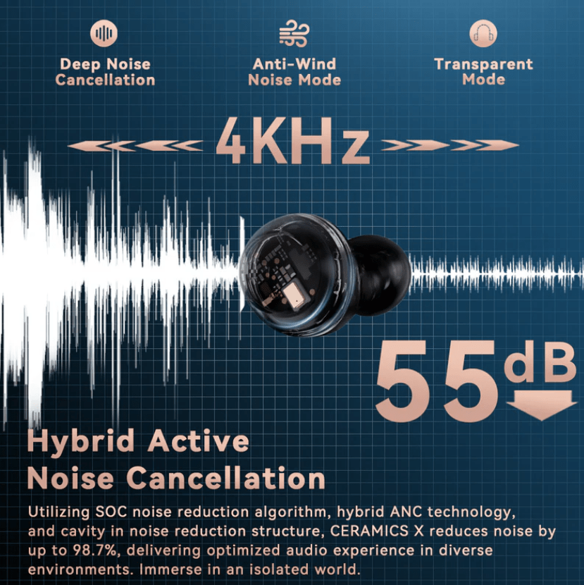 The Ceramics X with it’s impressive Bluetooth 5.3 and awesome codecs and low latency makes these an absolute steel at the price if wireless connectivity is your main point for buying TWS earphones. They are similar built to my Sennheiser Momentum wireless earphones, sound better and cost a lot less. I connected the Ceramics to all my Bluetooth devices like phone, Dap, laptop etc. Again, if I have to measure the connectivity to Earfree i5 I experienced over 20 meters connections with no cut outs but with Ceramics I did experience cut outs at not even 15 meters. Please also note I am measuring it against the Earfree i5 which costs a lot more. The app for me is such a gem that I would not buy the Ceramics X if there was no app. You get software updates for your earphones via the app and the software works without any glitches. As I am an audiophile that does not use an equalizer a lot the 4 settings equalizer is enough for me and I listen mostly on the HiFi setting with Full ANC on. I do prefer the Earfree i5 for making calls and tested the 4 mics on the Ceramics and they work really well. I just use the Earfree i5 more because I like the fit better.